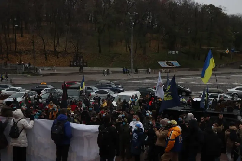 Напередодні початку акції учасники провели мітинг, на якому вигукували гасла: «Путін —ху*ло», «Зеля — сс*кло», «Імпічмент, суд, в'язниця».
