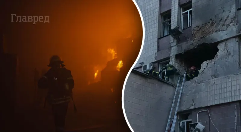 Атака дронов на Киев привела к разрушениям в городе / Коллаж: Главред. Фото: facebook.com/UA.KyivPolice, dsns_telegram