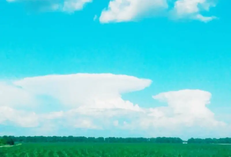Высоко в небе повисло облако странной формы, напоминавшее "атомный гриб", которое хорошо просматривалось со многих локаций.