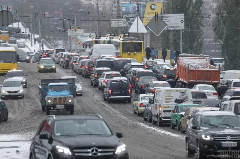 Центр Києва ввечері, 22 грудня, скували величезні затори через завантаженість доріг, ДТП та мітинг на вулиці Грушевського.