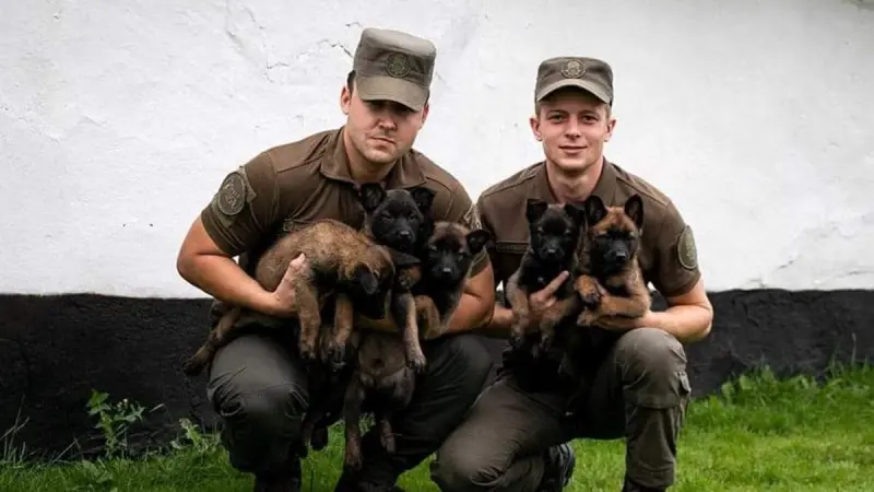 Сразу 5 щенков бельгийской овчарки пополнили ряды служебных собак в Учебном центре Нацгвардии Украины. Они будут помогать кинологам в раскрытии преступлений, в том числе в районе проведения Операции объединенных сил.