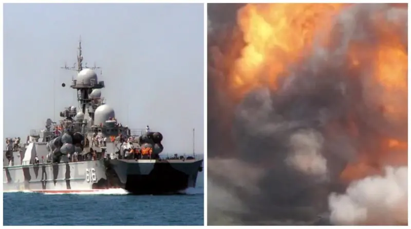 Экспериментальный морской дрон Службы безопасности Украины "Морской малюк" подбил российский ракетный корабль на воздушной подушке "Самум" в Черном море.