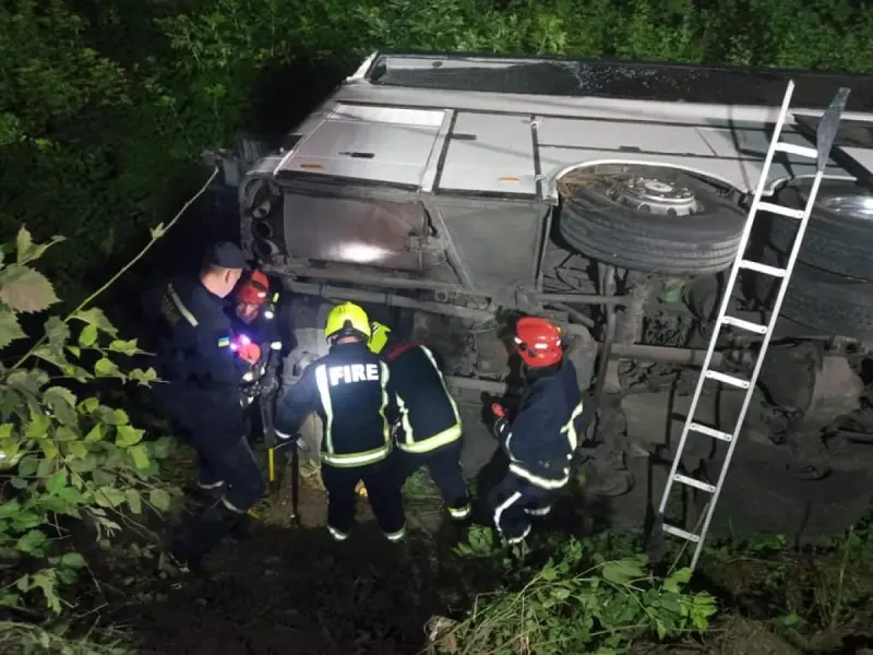На трассе между селом Крупец и городом Радивилов водитель не справился с управлением. В результате автобус перевернулся и вылетел в кювет.