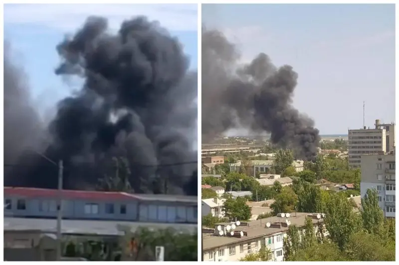 В оккупированном РФ Бердянске Запорожской области произошел крупный пожар. Густой черный дым виден из многих районов города.