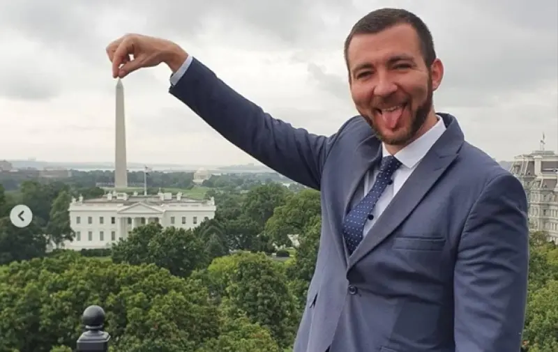 Спикер на своей странице в соцсети обнародовал два фото – на первом он запечатлен серьезным на фоне Монумента Вашингтона, а на втором – с высунутым языком и старым фототрюком с перспективой, при котором он якобы приподнимает пальцами находящуюся вдали стеллу.