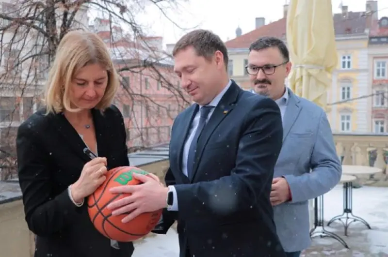 В понедельник, 17 января, во Львов прибыла делегация Международной федерации баскетбольных ассоциаций Европы (FIBA) во главе с управляющим директором Моникой Пухнер для обсуждения перспектив проведения мужского чемпионата ЕвроБаскет-2025.