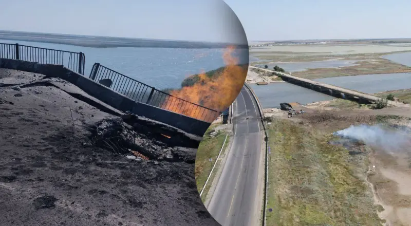 Также под обстрелом был мост через пролив Тонка, который соединяет город Геническ Херсонской области с Арабатской стрелкой.