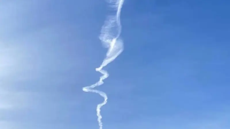 Кроме того, над городом был замечен белый след, предположительно, от ракеты, которая "летела куда-то вдаль". Также в небо поднят истребитель.