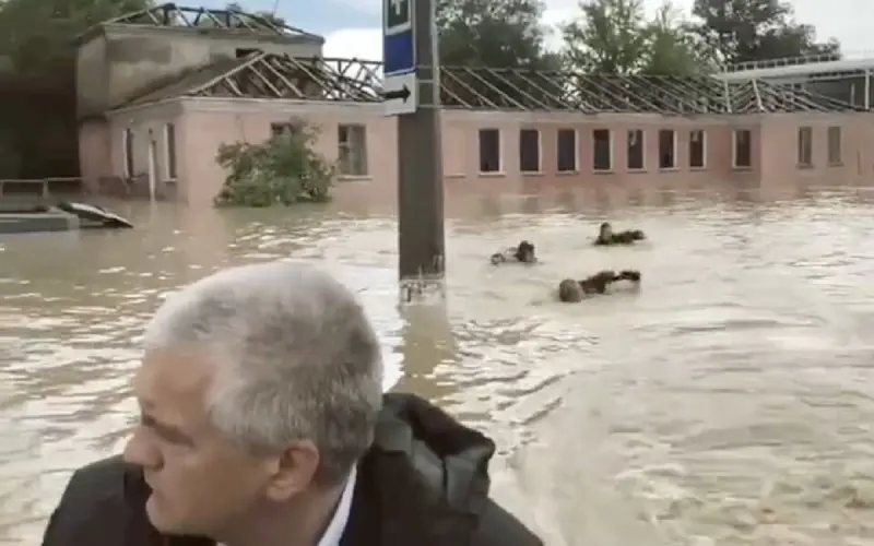 Керчь затопило после сильных ливней. Чтобы оценить масштабы наводнения, в город прибыл главарь крымских оккупантов Сергей Аксенов.