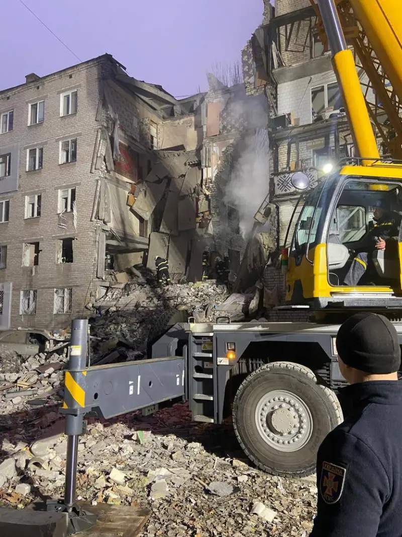 Дом, в который попала российская ракета, разрушен с пятого по первый этаж. Проводятся поисково-спасательные работы.