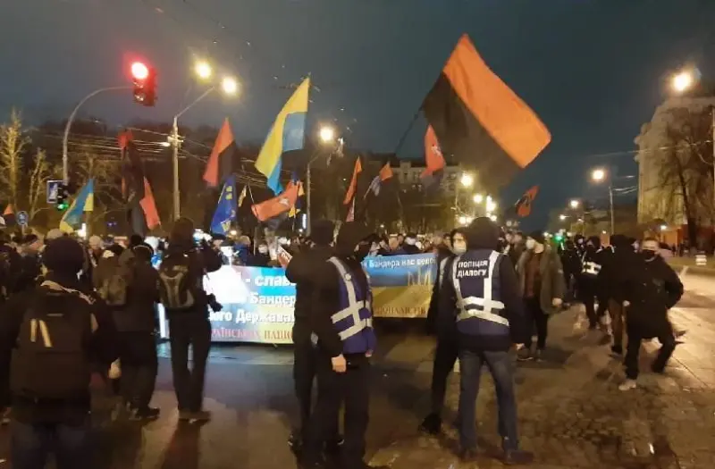 1 січня в центрі Києва проходить марш на честь 112-го дня народження Степана Бандери. Бандера був одним із лідерів українського націоналістичного руху минулого століття.