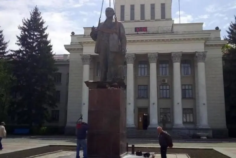 "Геническ - установка памятника Ленину В.И." - прокомментировал он снимки.