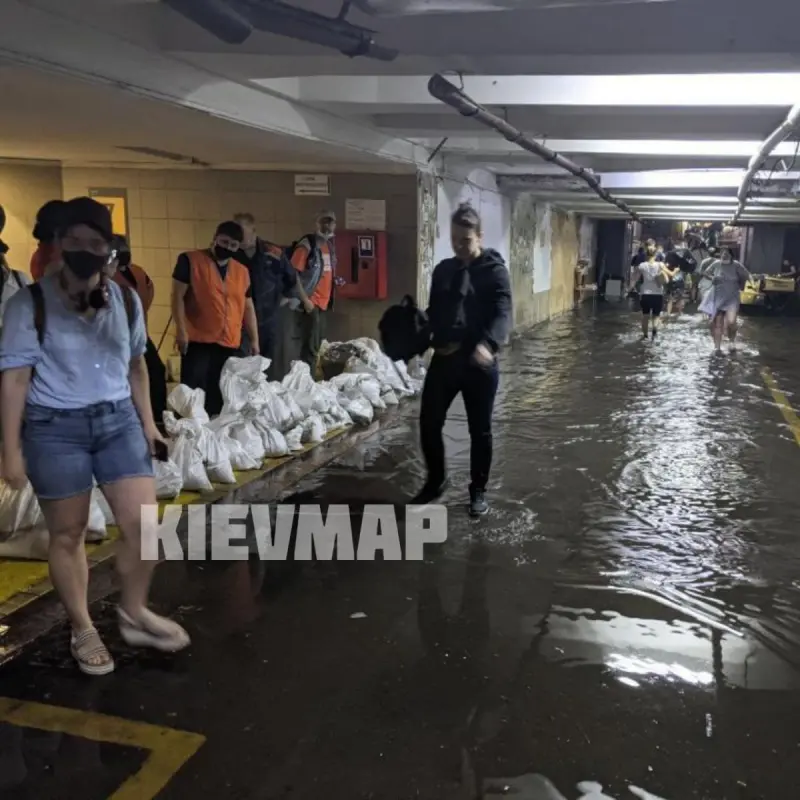 В Киеве во вторник, 20 июля, снова прошел сильный дождь с грозой. Ливень подтопил подземные переходы и места в низине города. Несмотря на то, что дождь начался вечером, вода мгновенно "заблокировала" подземку.