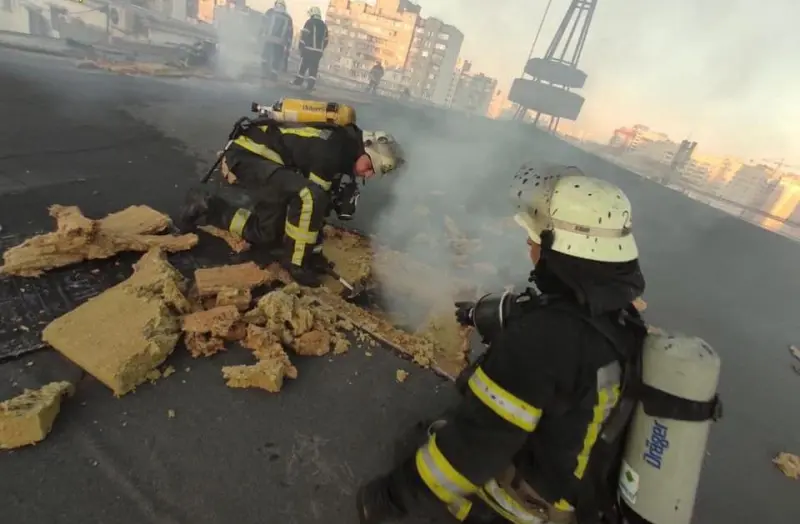 Отмечается, что возгорание произошло на 8-м этаже 8-этажного здания с распространением пламени на кровлю.