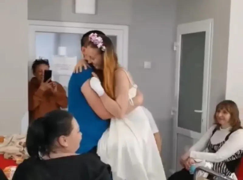 В Львове в больничной палате состоялась свадьба 23-летней медсестры из Лисичанска Оксаны с ее возлюбленным. Девушка за взрыва мины потеряла обе ноги и пальцы на левой руке. Сейчас она продолжает лечение и готовится к протезированию.
