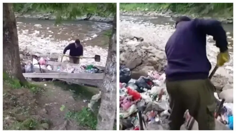 В одном из самых живописных мест Карпат, на территории Национального природного парка "Синевир", очевидцы увидели, как неизвестный мужчина сбрасывал бытовые отходы прямо в реку. Причем мусора этого у него был целый воз.