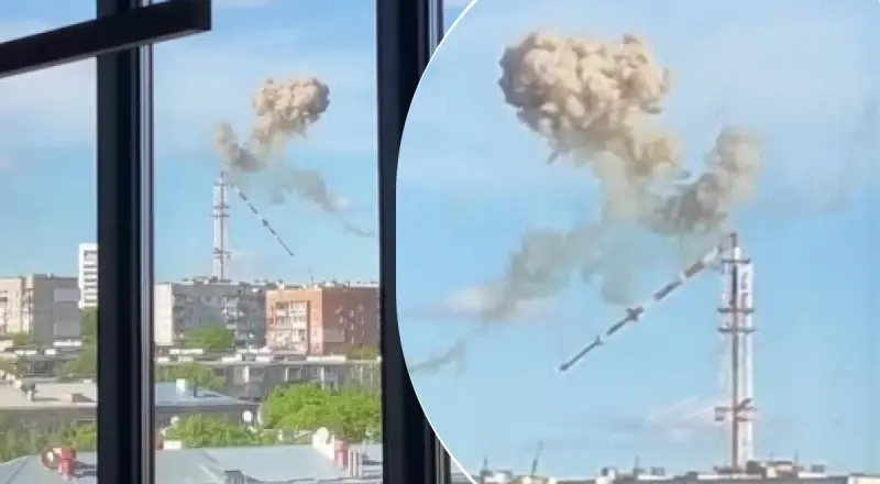 В Сети появилось видео, на котором было запечатлено сам момент удара по вышке и падение ее части.
