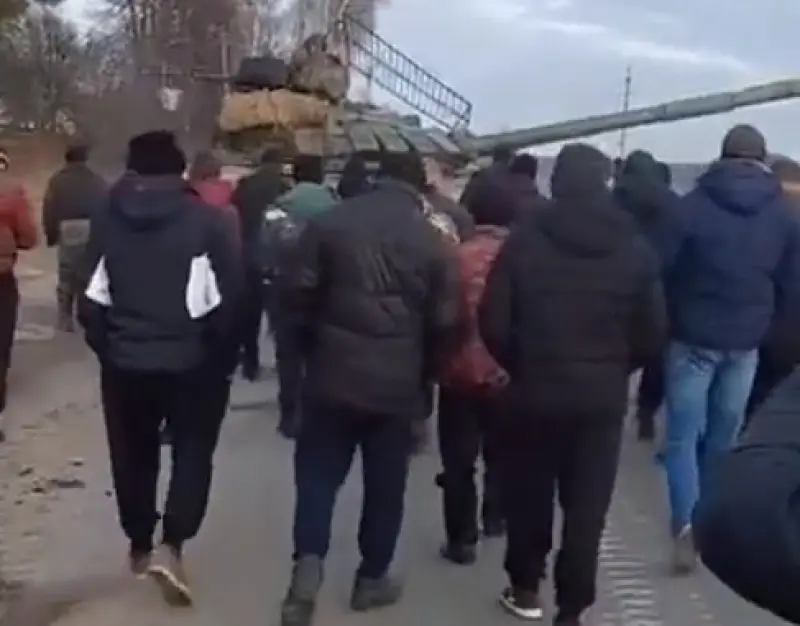 На въезде в город Корюковка на Черниговщине местные жители вместе с правоохранителями заставили развернуться колонну танков врага.