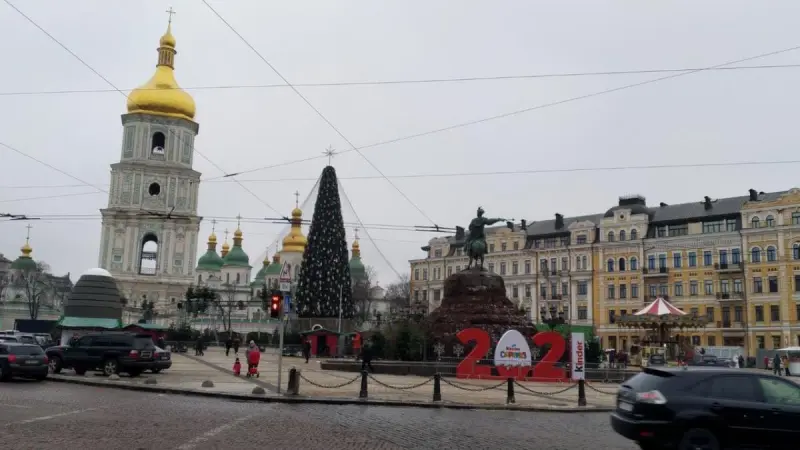 У Києві на Софійській площі 17 грудня на головній ялинці країни встановили різдвяну зірку - вона замінила капелюх, який розкритикували деякі українці та представники православної церкви України.