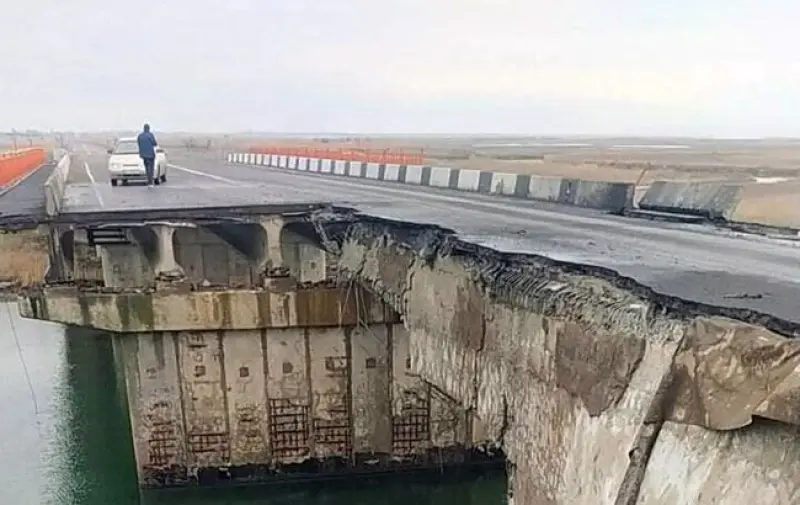 Часть моста полностью разрушена.