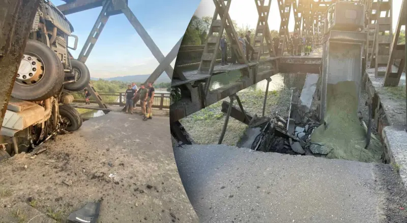 "24 июля в 19:00 в Службу спасения поступила информация о разрушении автомобильного моста (протяженностью ориентировочно 30 м) между пгт. Тересва и с. Бедевля Тячевского района. В результате происшествия в реку Тересва упали 2 транспортных средства: один грузовой и один легковой автомобили. По предварительной информации 5 человек травмированы, среди них 2 детей. Пострадавших госпитализировали в Тячевскую районную больницу", - сообщили в ГСЧС Украины.