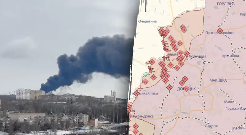 Утром в понедельник, 19 февраля, во временно оккупированной Макеевке прогремела серия взрывов. Позже над городом поднялся густой черный дым.