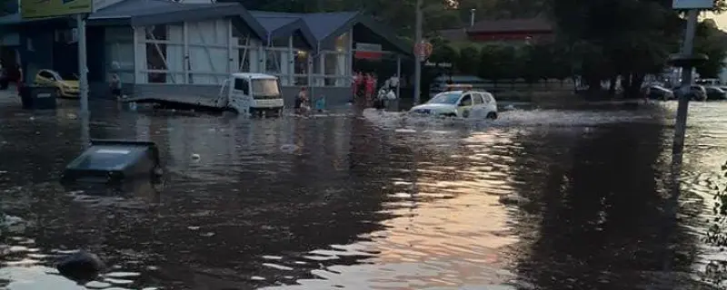 При цьому автомобілі змушені перепливати через метрові калюжі, а місцеві жителі почали купатися на підтоплених вулицях.