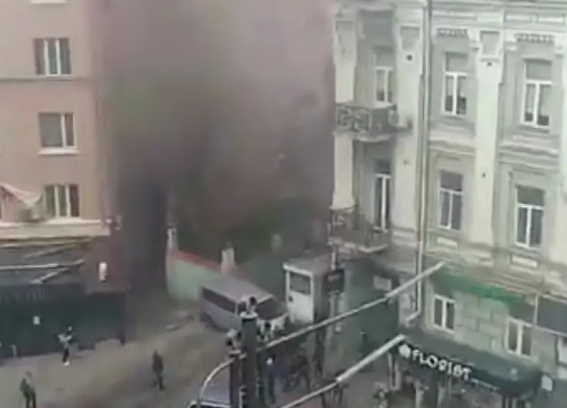 Взрыв и клубы черного дыма: у офиса кума Путина в Киеве зажгли файеры