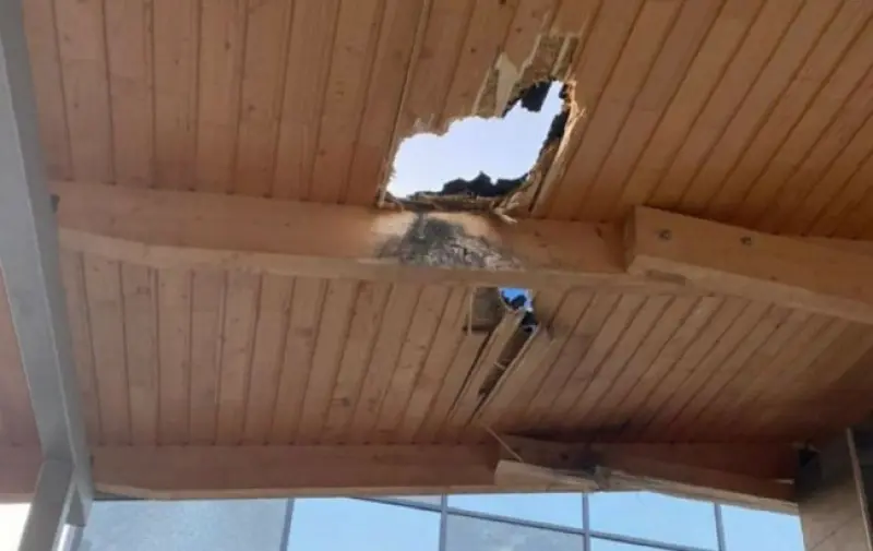 Унаслідок обстрілу пошкоджені 7-9 скляних панелей самої будівлі та альтанки, які стоять біля будівлі. На даху альтанки застряг снаряд з РПГ, який не розірвався.