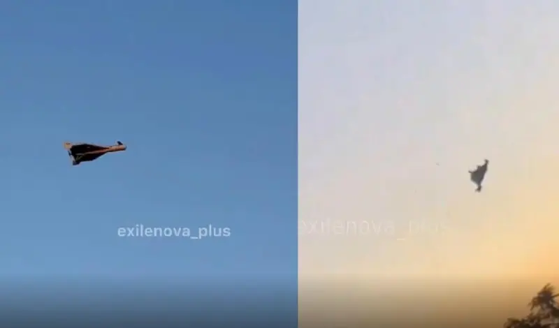 В сети появились видеозаписи, на которых зафиксированы как удары по объекту, так и полёт дронов. На одном из роликов видно устройство, внешне напоминающее иранско-российский «Шахед»/«Герань-2», но с заметными отличиями — в частности, с дополнительными управляющими поверхностями в носовой и хвостовой частях.