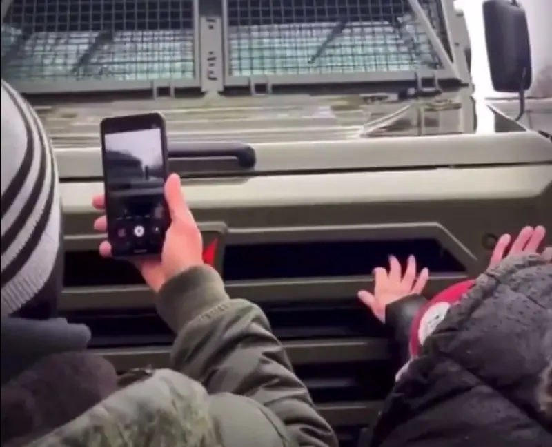 Другие жители города блокируют движение колонны, некоторые пытаются поговорить с российскими оккупантами.