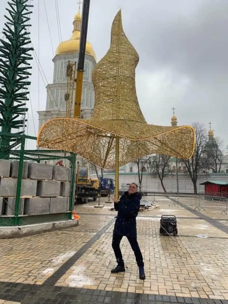 Політичний експерт Денис Гороховський повідомив, в Києві продовжують монтаж головної новорічної ялинки країни, і додав: "Ось максимально згоден. Капелюх - це символ всього. Символ року, символ країни, символ всього, що відбувається. Просто капелюх"»