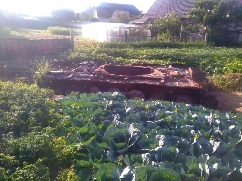 В Большой Дымерке Киевской области местная жительница высадила овощи вокруг сожженного на огороде российского танка. Фото необычной «клумбы» было опубликовано в соцсетях.