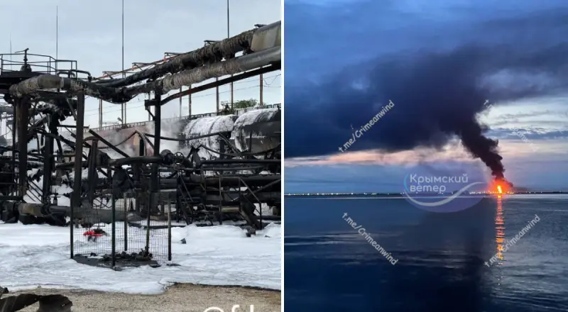 В ночь на 31 мая жители Тамани, Керчи и Глазовки проснулись из-за сильных взрывов. В порту Кавказ вспыхнул мощный пожар, который было видно даже со спутника.