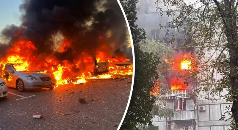 Ракета попала в многоэтажку в Днепре, вспыхнул пожар/ коллаж: Главред, фото: Киевская ОВА, Днепропетровская ОВА