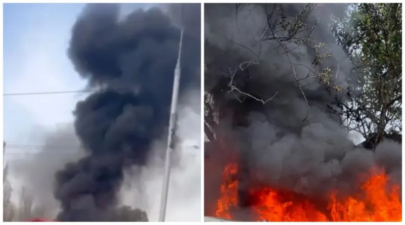 В Буденновском районе Донецка нашли обломки ракеты. На месте "прилета" был мощный пожар.