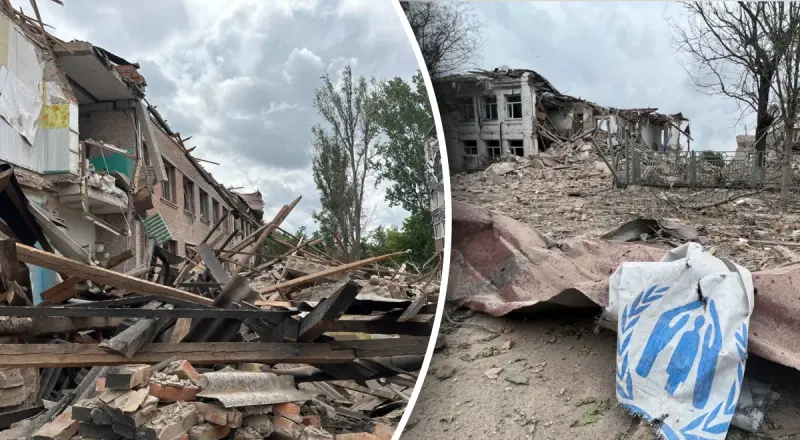 Страна-агрессор Россия ударила управляемой авиабомбой по месту выдачи гуманитарной помощи в прифронтовом Орехове Запорожской области.
