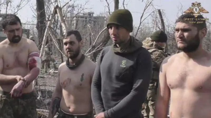 29 апреля мама одного из них получила фотографию ее мертвого сына. На ней - обнаженный по пояс мужчина, похожий на сдавшегося украинского бойца (второй слева на ролике), с характерной татуировкой на левой части груди.