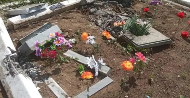 Местные жители говорят, что на кладбище с дороги «слетел» танк РФ, но не остановился, а проехал прямо по могилам.