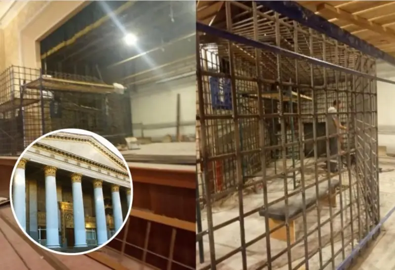 Как говорит чиновник, пока в филармонии в Мариуполе, где были заранее установлены железные клетки, приостановлена подготовка к судилищу ‒ в том числе убрано солдатское оцепление здания и квартала.
