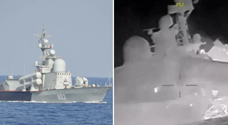 Кау уточнили в TWZ, один из дронов приблизился к российскому ракетному катеру с правого борта, но сделал резкий поворот налево к его корме и поразил цель. Второй дрон также атаковал левую часть катера, а третий – ближе к середине. На опубликованных кадрах видно, как российское судно начинает уходить под воду, что свидетельствует об успешной спецоперации.