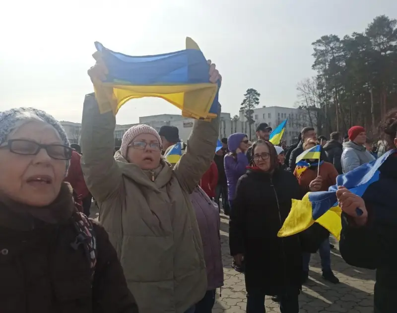 Как рассказал глава Киевской ОВА Александр Павлюк в Telegram, российские оккупанты после вторжения в город захватили городскую больницу. Он отметил, что жители, которые вышли на проукраинский митинг, взяли с собой национальную символику. Они собрались на главной площади и скандировали "Славутич – это Украина", "Слава Украине". Также горожане развернули огромный украинский флаг.