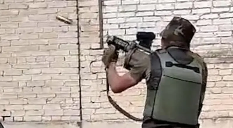 Обратим внимание, что на опубликованном видео зафиксировано, как украинский боец производит 5 выстрелов, а через несколько секунд слышны взрывы гранат.