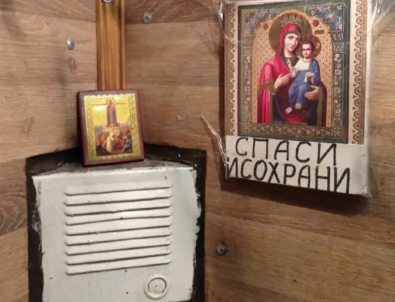 В Киеве в доме по ул. Днепровская Набережная, 9-а в лифте вместо установки связи с диспетчером повесили иконы.