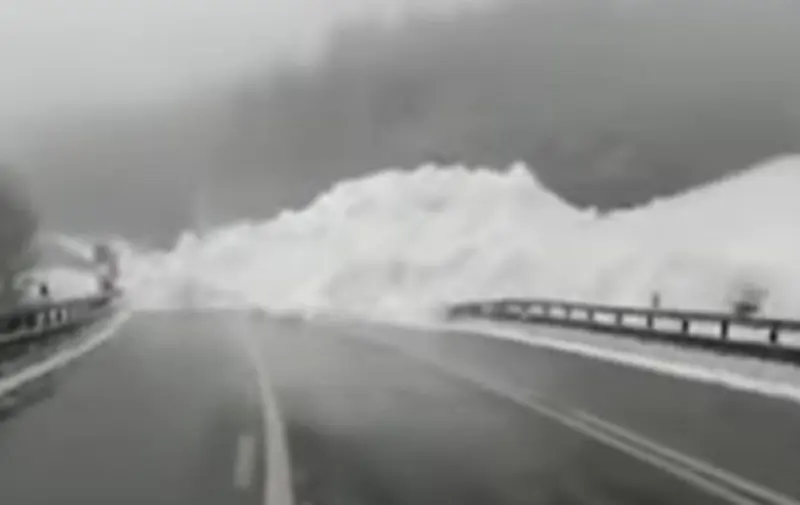 В Сети опубликовали видео с места происшествия. На видео зафиксировано, как большая масса снега сходит на трассу, делая невозможным движение транспорта.