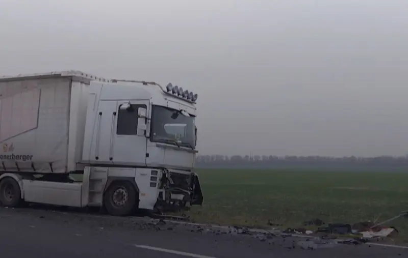На дороге до сих пор лежат обломки и разбросанные вещи погибших. Предварительно известно, легковушка и грузовик ехали навстречу, и легковушка внезапно съехала со своей полосы на встречную. Столкновение было лоб в лоб, говорит и водитель фуры, который находится в шоковом состоянии.