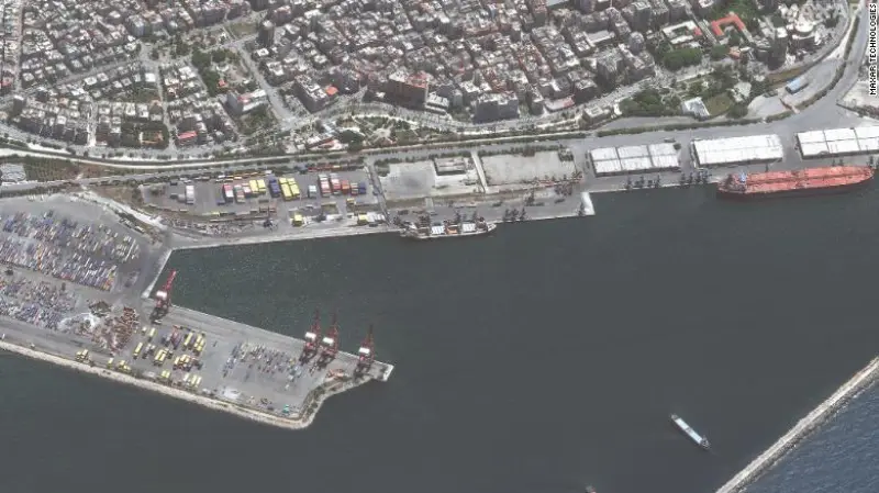 Российский корабль "Матрос Позынич", которым незаконно вывезли из Украины тысячи тонн зерна уже заметили в сирийском порту Латакия. Соответствующие фото со спутника сделала американская компания Maxar Technologies, сообщает CNN.