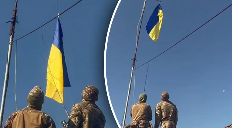 Смотрите видео о том, как в Харьковской области военные подняли флаг Украины:
