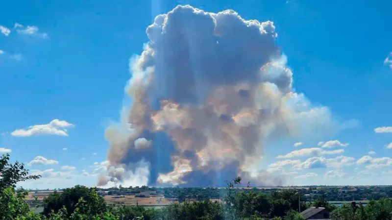"В районе Херсона снова пылает склад с "селитрой и гуманитаркой". Также в районе взрыва слышен вой сирен и заметно суету убегающих в разные стороны орков и в спешке вывозят как награбленный, так и привезенный с собой", - сообщает пресс-служба Стратегического командования.