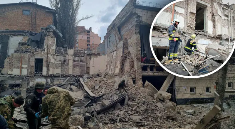 В ГСЧС сообщили, что в результате ракетной атаки россиян повреждено трехэтажное здание спортзала в Печерском районе Киева.
